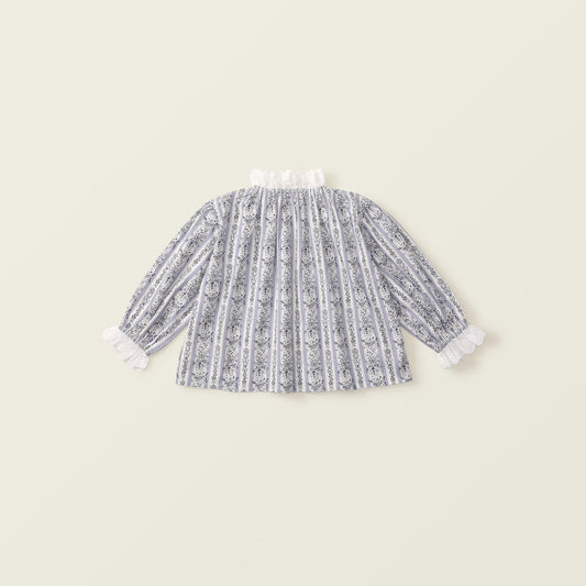 Girls Vintage Lace Collar Long Sleeve Floral Top