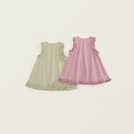 Girls' Blue Pleated Lace Dress - Spring New Arrival