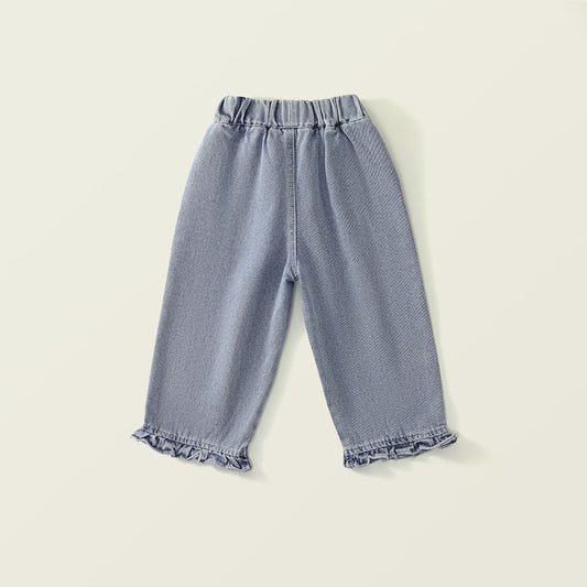 Girl's Floral Long-Sleeve Dress with Ruffle Trim
