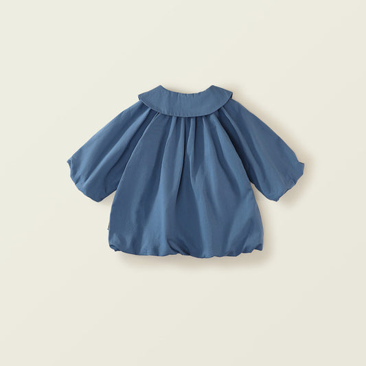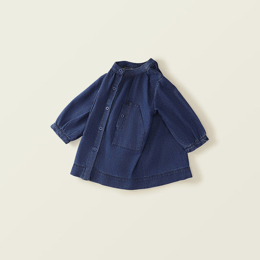 Girl's Korean-Style Long-Sleeve Denim Dress with Stand Collar