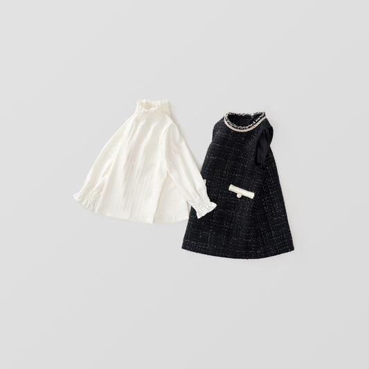 Girl's Chanel-Inspired Two-Piece Set - Sleeveless Vest Dress & Long-Sleeve Top