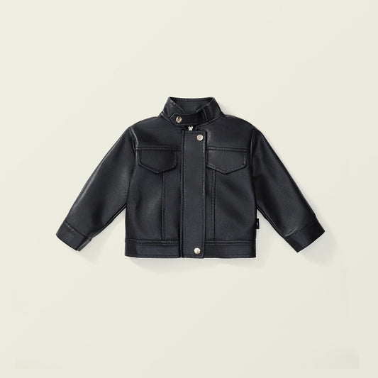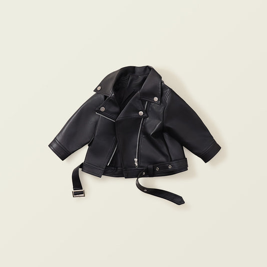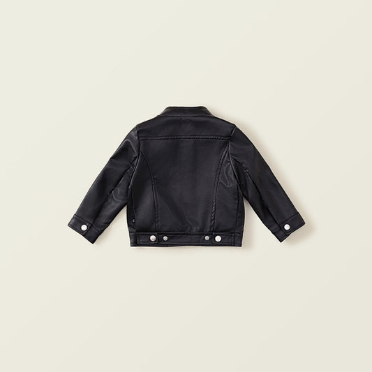 New Autumn Kids' Black Lapel Leather Jacket-K5135754