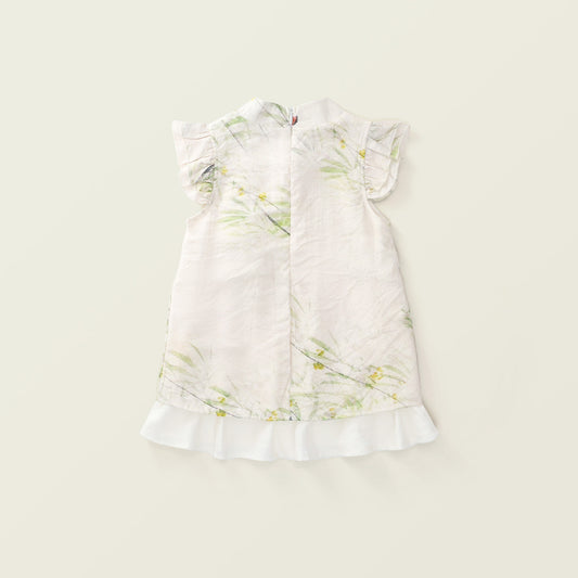 Girls Green Cartoon Print Flutter Sleeve Dress