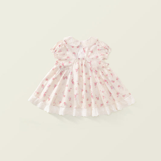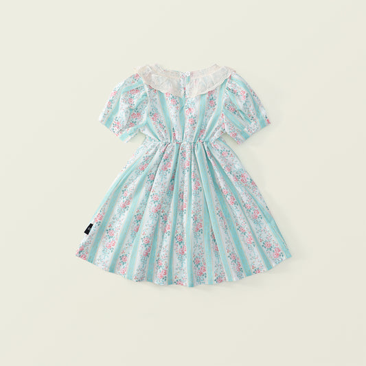 Girls Summer French Lace Patchwork Puff Sleeve Floral Princess Dress