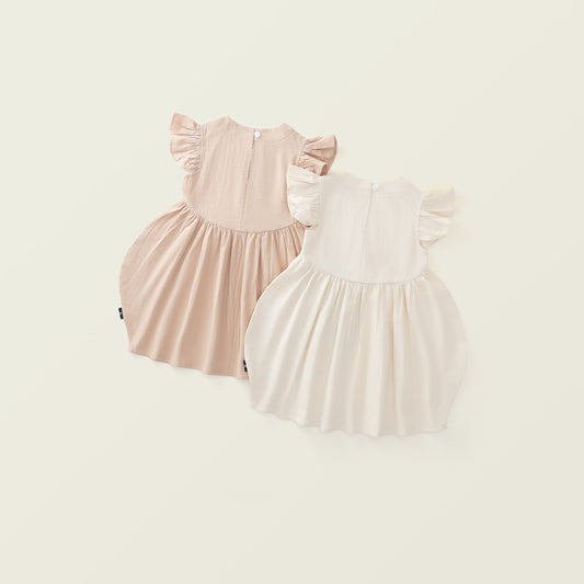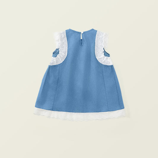 Girls' Fashion Denim Dress with Lace Trim Flutter Sleeves