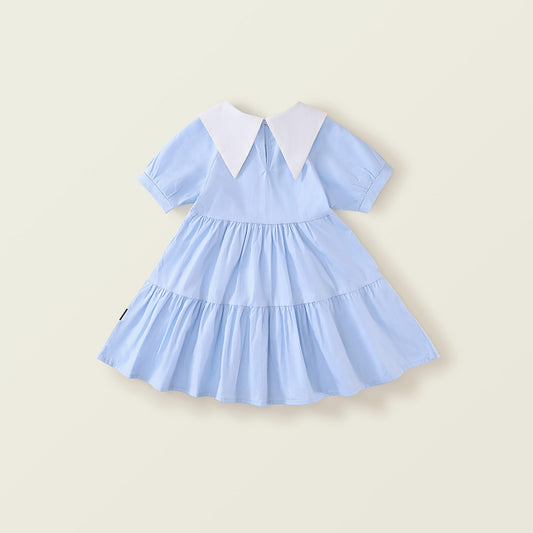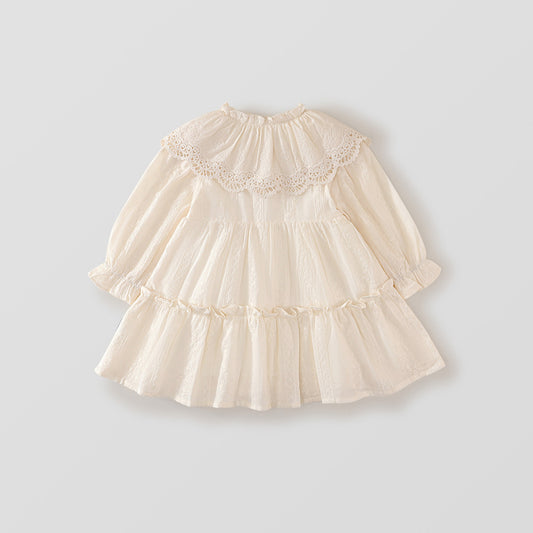 Girl's Lace Trim Lapel Dress - 2025 Spring/Fall New Arrival