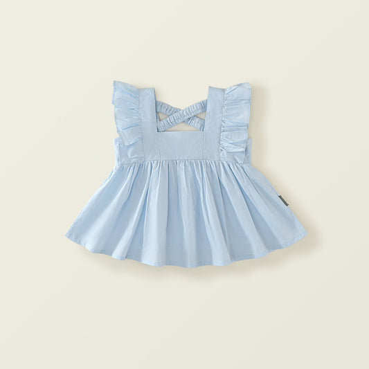 Girl's 2025 Summer Blue Flutter Sleeve Top