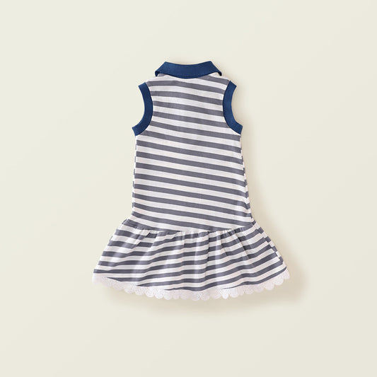 Girl's Blue Striped Polo Dress - 2025 Summer New Arrival