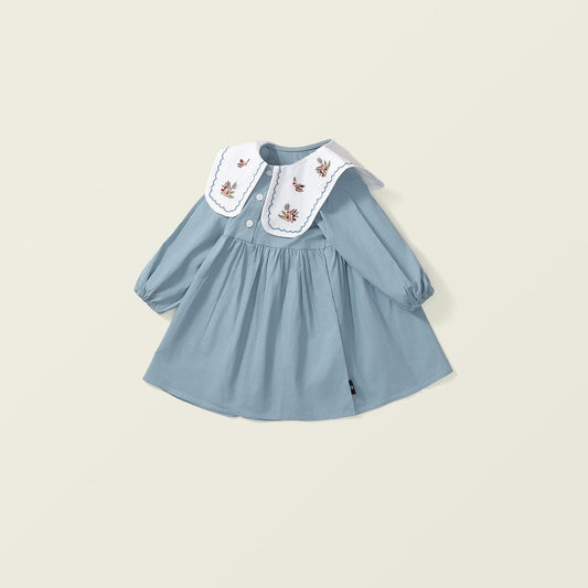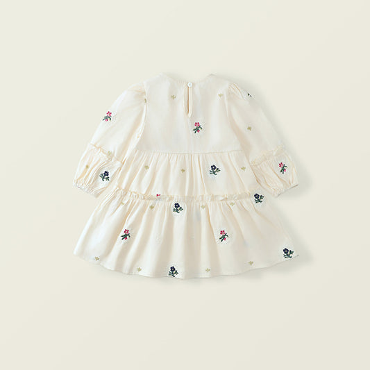 Girl's Cotton Embroidered Long-Sleeve Princess Dress