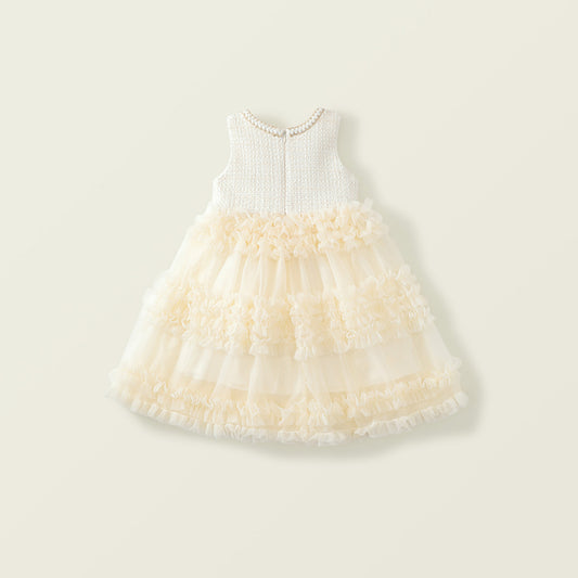 Girl's Ruffle Trim Country-Style Princess Dress with Gathered Sleeves