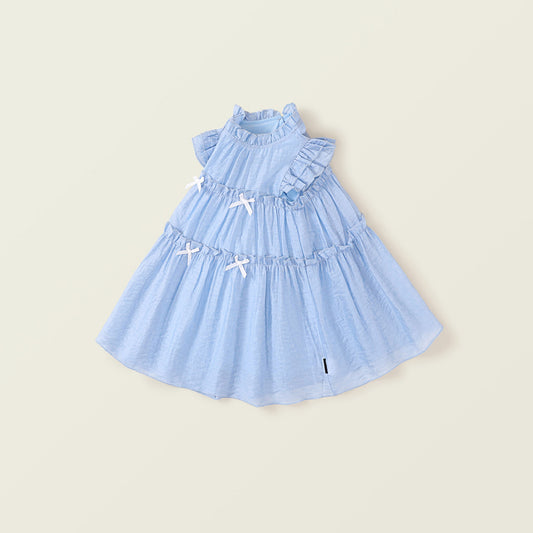 Girl's Blue Lace Flare Sleeve Resort Dress