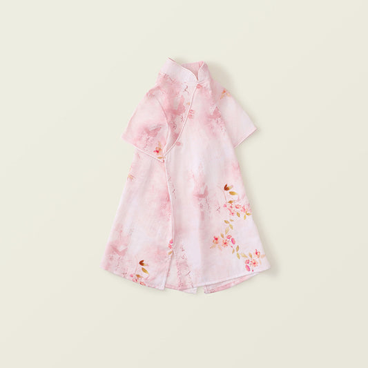 Girl's Elegant Floral Cheongsam/Qipao-Inspired Summer Dress