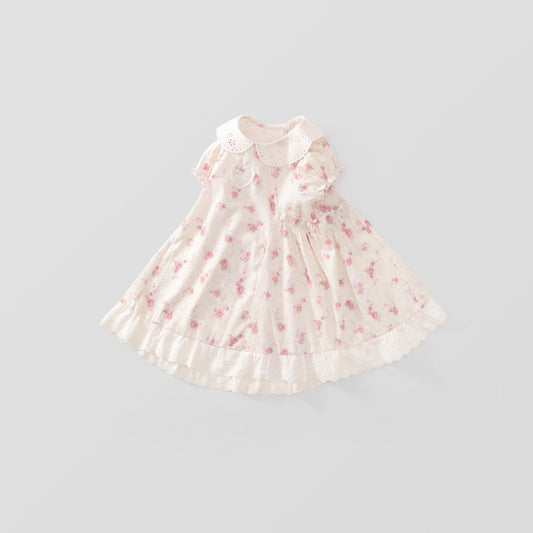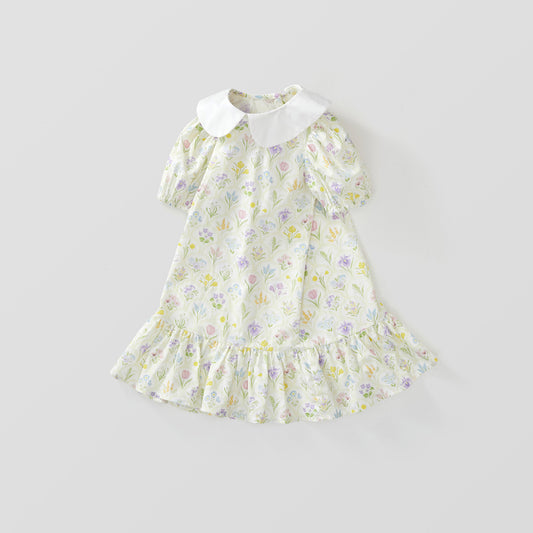Girl's Summer Floral Peter Pan Collar Princess Dress