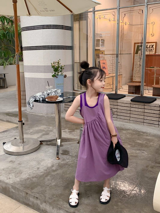 Girl's Colorful Polka Dot Sleeveless Vest Dress