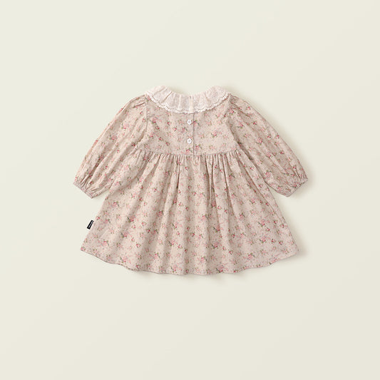 Girl's Countryside-Style Floral Long-Sleeve Dress