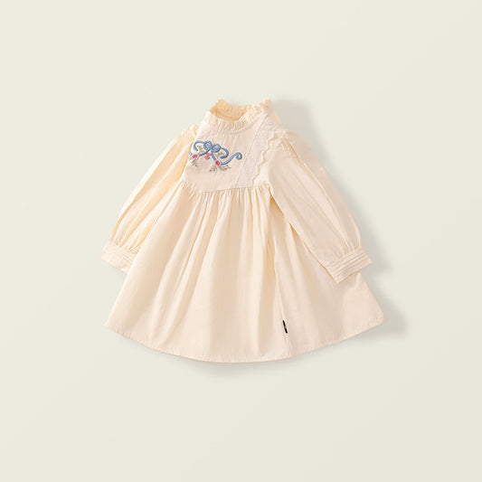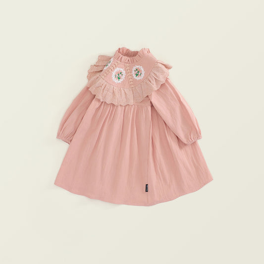 Girl's French Lace-Trimmed Long-Sleeve Dress