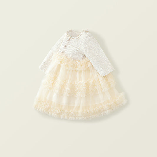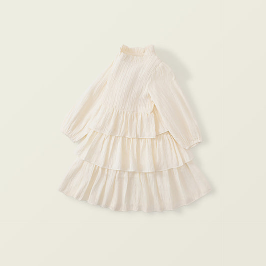 Girl's Ruffle Collar Long-Sleeve Chiffon Princess Dress