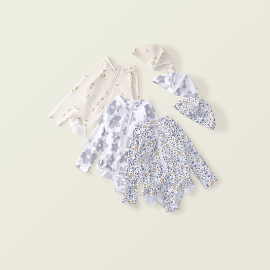 Girls' Long-Sleeve Swimsuit Set with Hat