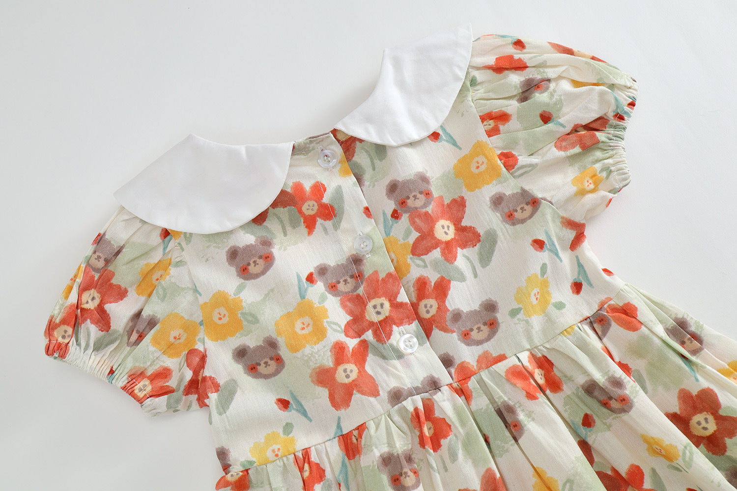 Discover our 2024 summer new arrival: the Girls' Print Gathered Dress with Bunny and Cat Pattern. This adorable dress features a charming bunny and cat print, complete with a stylish Korean-style peter pan collar. Designed for both comfort and cuteness, the gathered waist adds a lovely silhouette while the breathable fabric keeps your little one cool. Perfect for any occasion, this dress is a delightful addition to your child's summer wardrobe.