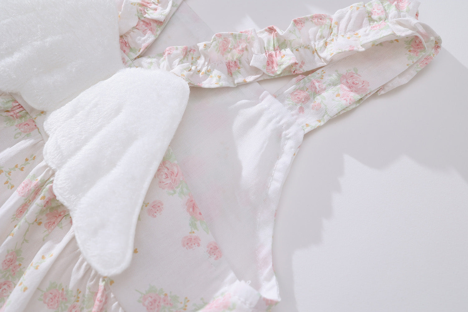 This adorable summer dress for girls features a cute floral pattern and charming angel wings on the back. Perfect for the warm season, this tank dress combines style and comfort, making it an ideal choice for your little one. The lightweight, breathable fabric ensures she stays cool, while the short length and delicate details add a touch of sweetness to her look. Perfect for any occasion, this dress is a must-have for her summer wardrobe.