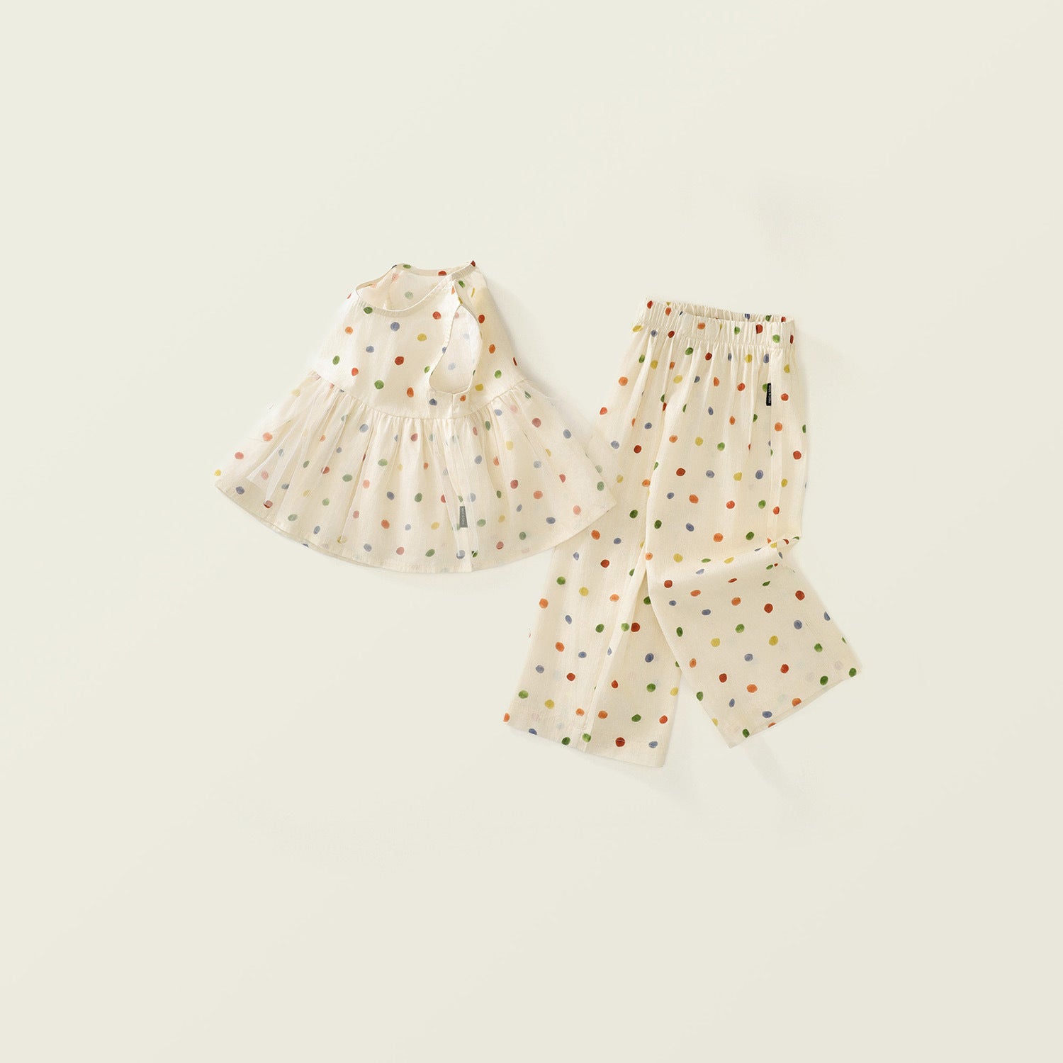 Dress your little one in style this summer with our vibrant polka dot two-piece set designed for girls. Featuring a trendy Korean-inspired design, this set includes a sleeveless top and straight-leg pants, making it perfect for warm weather. The colorful polka dots add a playful touch to her wardrobe, while the comfortable fabric ensures she stays cool and cozy throughout the day. Let her twirl and dance in this adorable and stylish summer set!