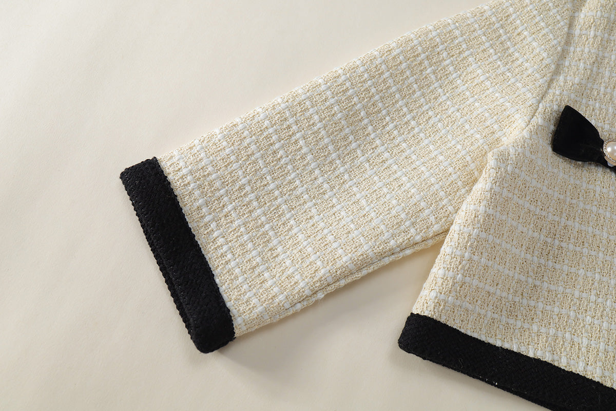 Girls 2025 Autumn Velvet Jacket & Plaid Skirt Set
