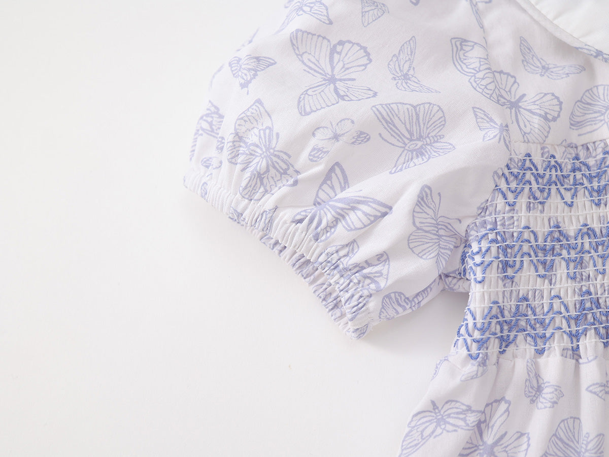Flutter into summer with our Girl's Butterfly Smocked Dress! This enchanting 2025 design features hand-gathered smocking, whimsical butterfly prints, and a French-inspired lapel collar on breathable organic cotton. The elasticized bodice ensures flexible comfort while the tiered skirt dances with every step.