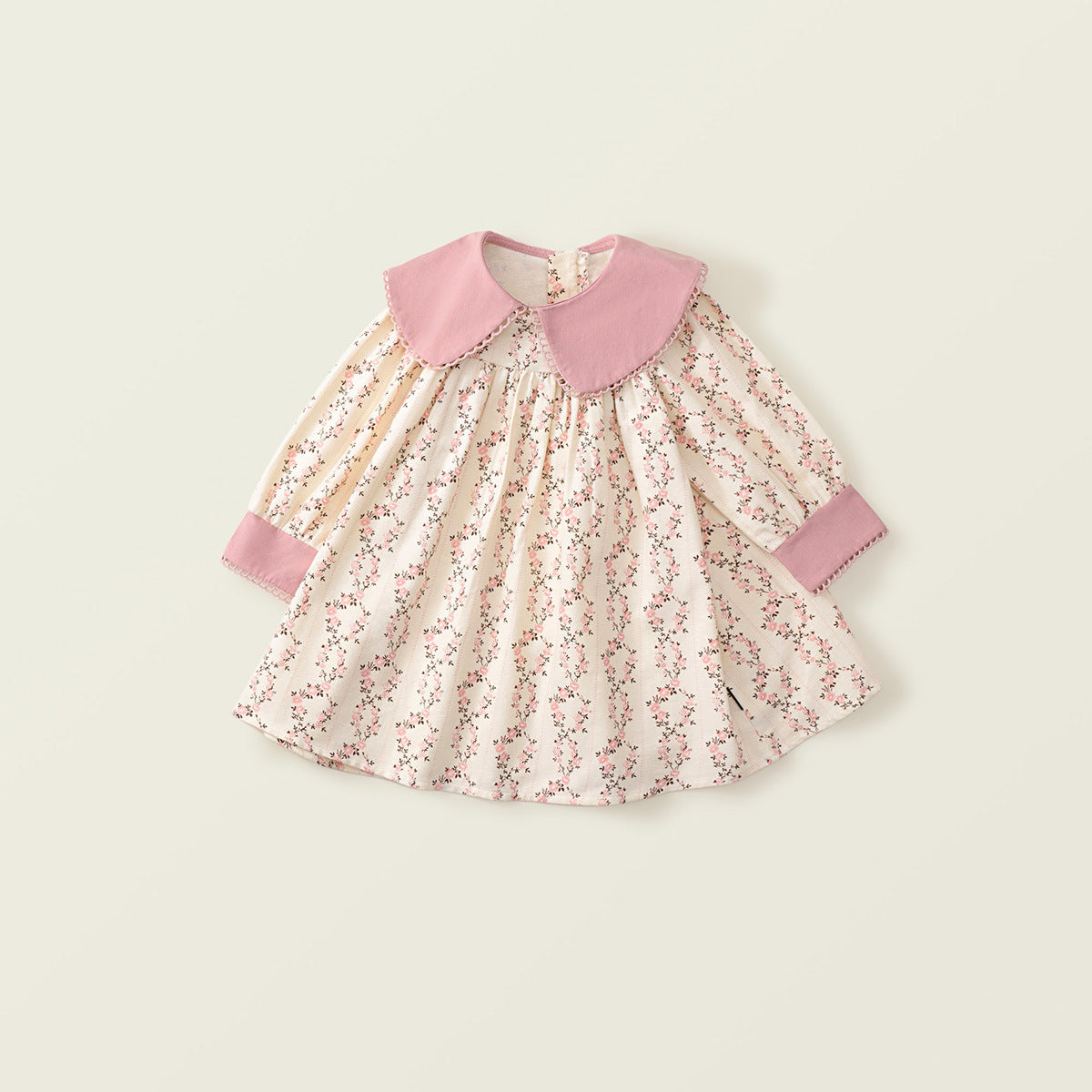 Girl's Countryside-Style Floral Long-Sleeve Dress