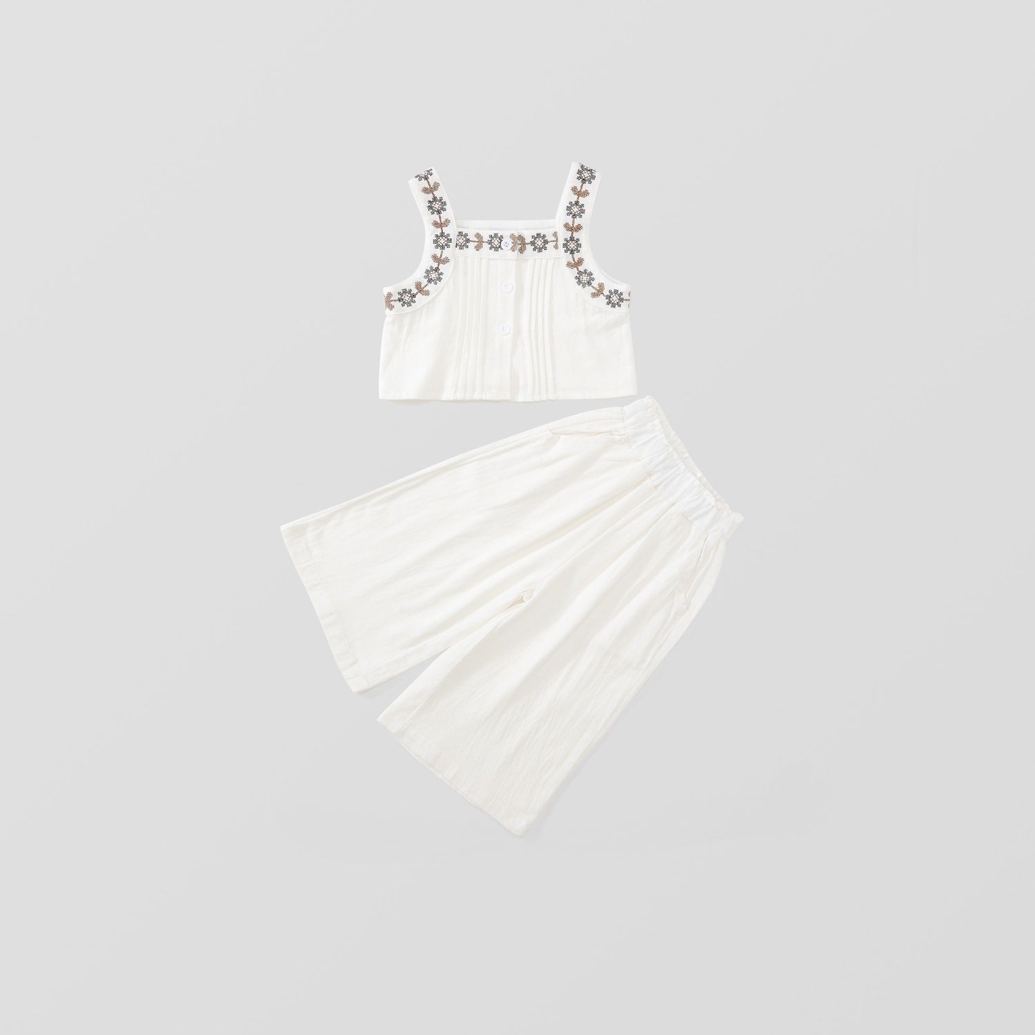 Girl's Embroidered Halter Top and Wide-Leg Pants Set