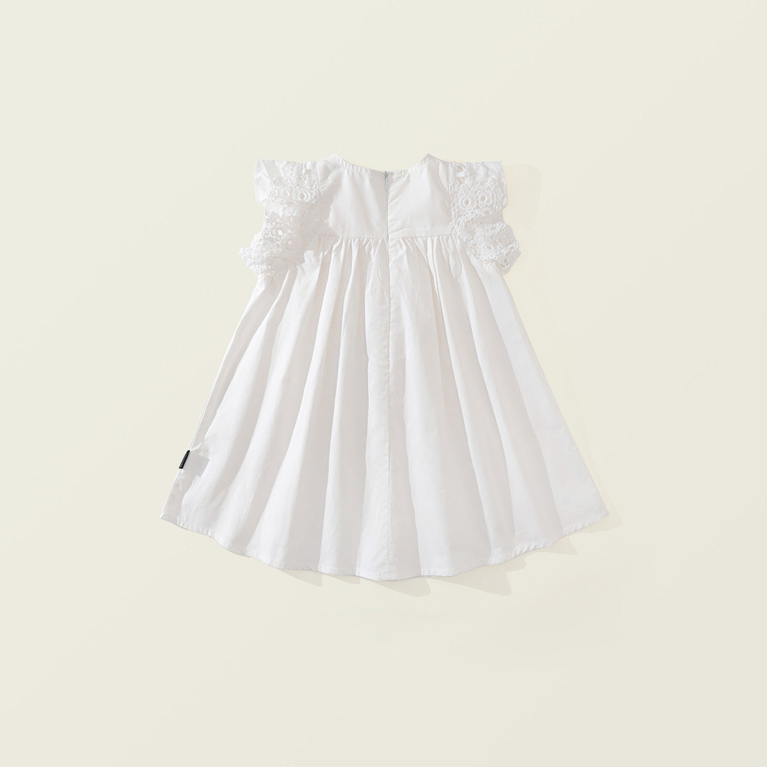 Elegantly designed for little princesses, our French-inspired lace sleeveless dress combines sophistication with whimsical charm. Crafted with a stunning white base, the dress features delicate lace patches and charming puffed that add a touch of magic to any outfit. Perfect for special occasions, this dress is crafted from high-quality materials to ensure both comfort and style, making it a cherished addition to her wardrobe.
