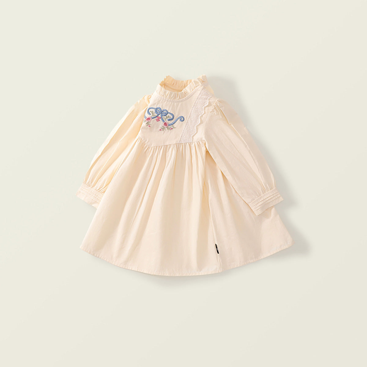 Indulge your little princess in this charming French-inspired lace-trimmed long-sleeve dress designed for kids. Crafted from soft, breathable cotton, this dress features beautiful lace details and ruffle trim at the hem, adding a touch of elegance and sophistication. The long sleeves provide warmth and coverage, while the comfortable fit ensures she can move freely and enjoy her day. Perfect for special occasions, parties, or just a day of play, this princess dress will make her feel like royalty.