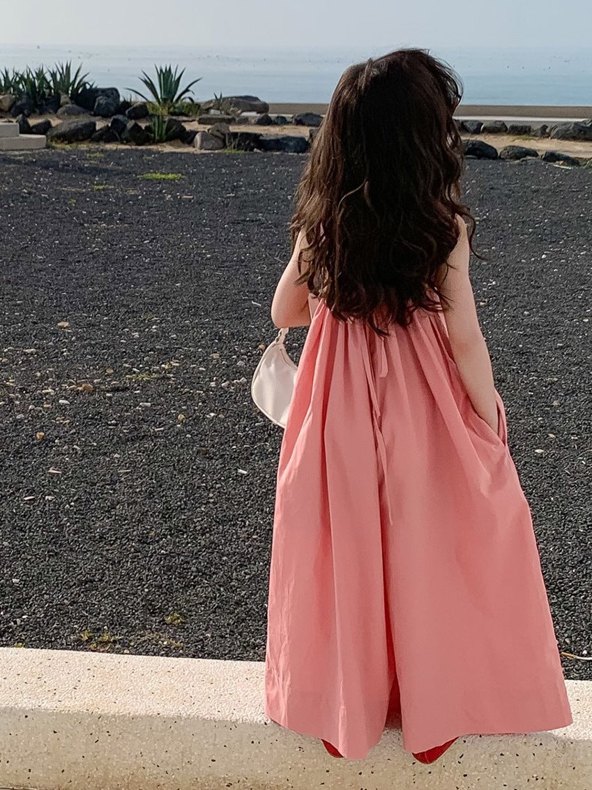This adorable jumpsuit for girls combines the convenience of a one-piece outfit with the playful charm of a suspender design. Crafted in a soft pink hue, the jumpsuit features a Korean-inspired wide-leg design that adds a touch of elegance and sophistication. Perfect for young children, this jumpsuit is both stylish and practical, making it easy for your little one to move around and play. The suspenders add a sweet and playful touch, while the overall design ensures that your child will look adorable and feel comfortable all day long.