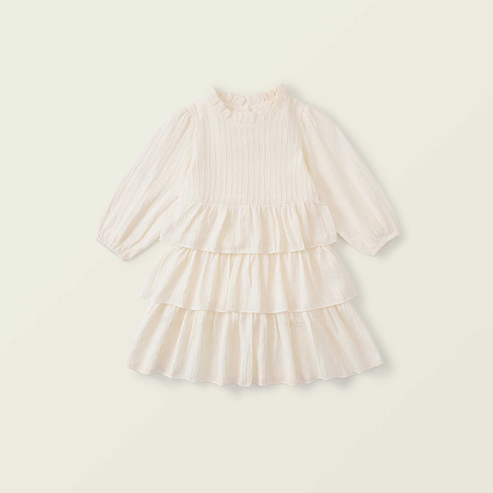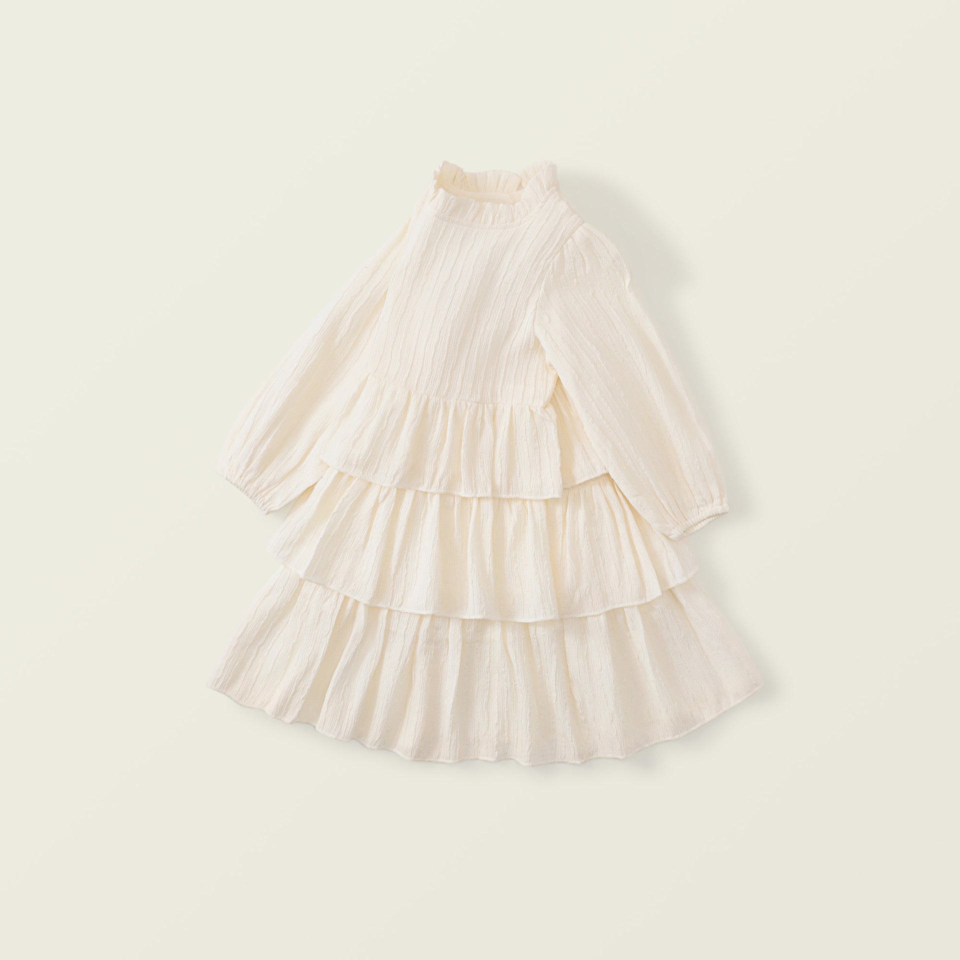 Elevate your toddler's charm with this exquisite girl's ruffle collar long-sleeve chiffon dress, designed in a trendy Korean cake style. Crafted from lightweight and airy chiffon fabric, this dress ensures maximum comfort and breathability for all-day wear. The adorable ruffle collar adds a sweet and romantic touch, while the layered cake design creates a princess-like appearance that your little one will love. Perfect for special occasions, parties, or simply dressing up, this dress lets her feel like a real princess, ready to conquer the world with her charming and elegant style.