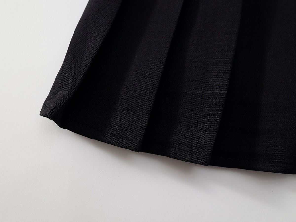 Channel classic academia charm with our Girl's School Style Pleated Skirt! This 2025 summer essential features sharp knife pleats and delicate embroidery accents, crafted from lightweight poly-wool blend for structured drape. The elastic waistband with inner shorts ensures modesty during active play.