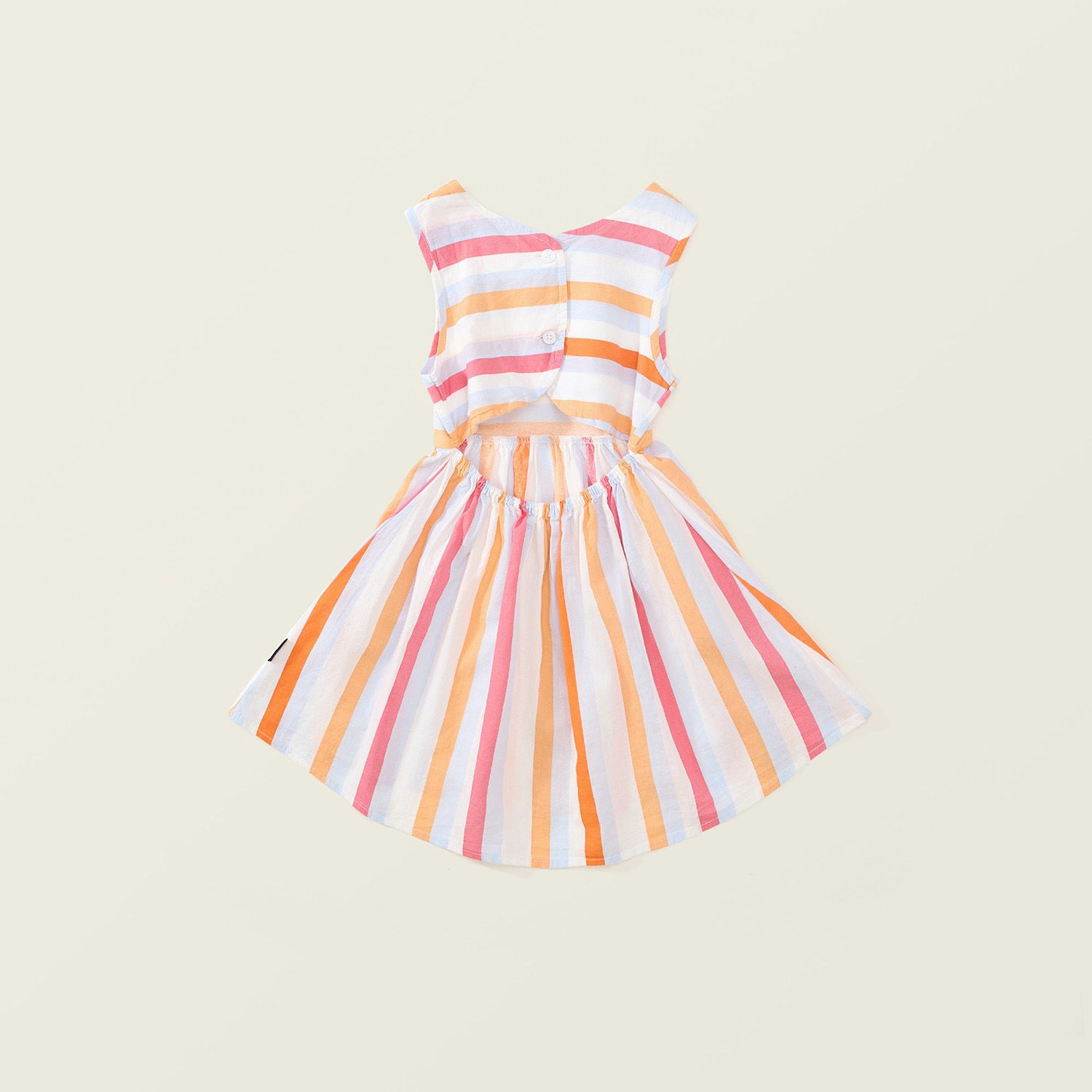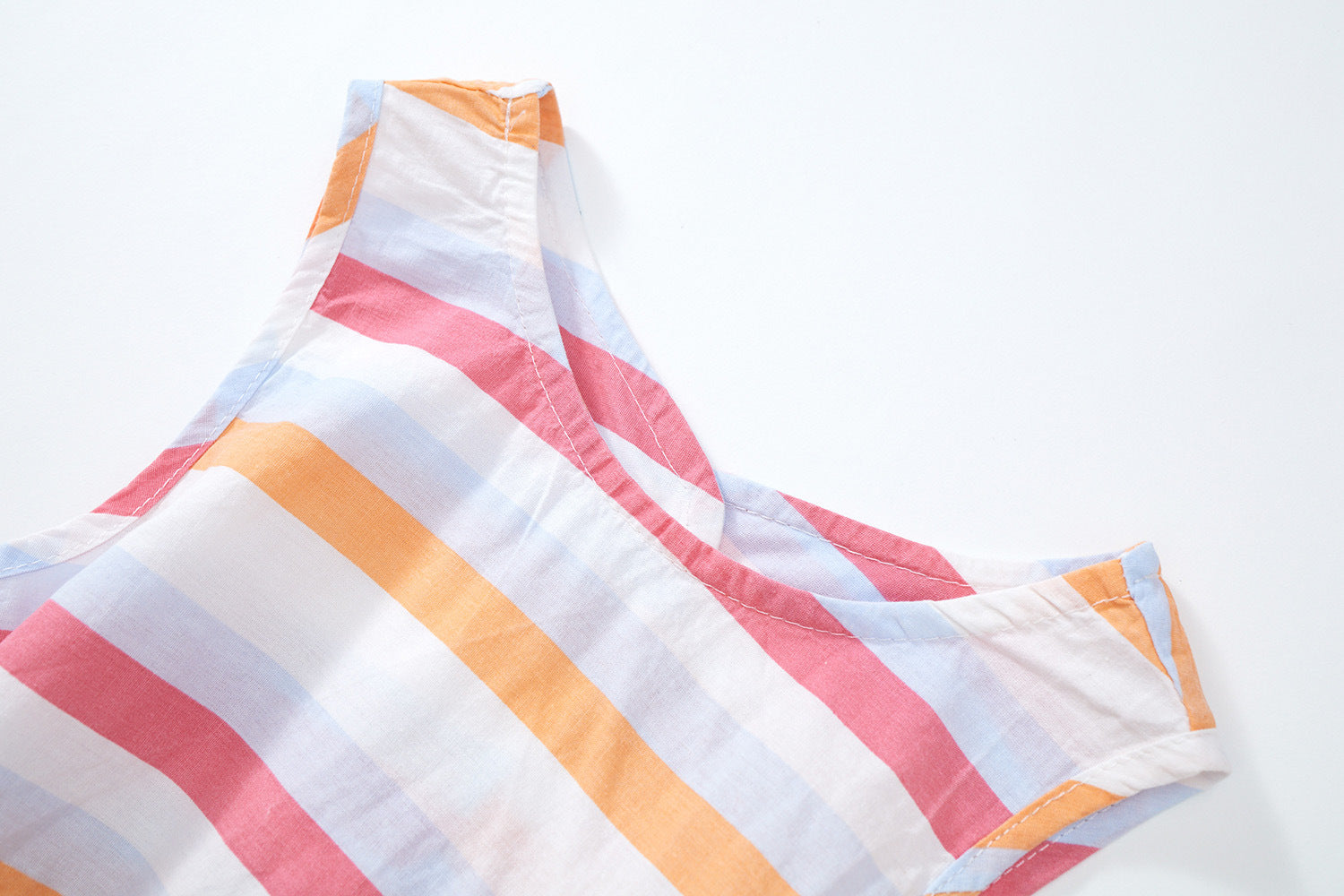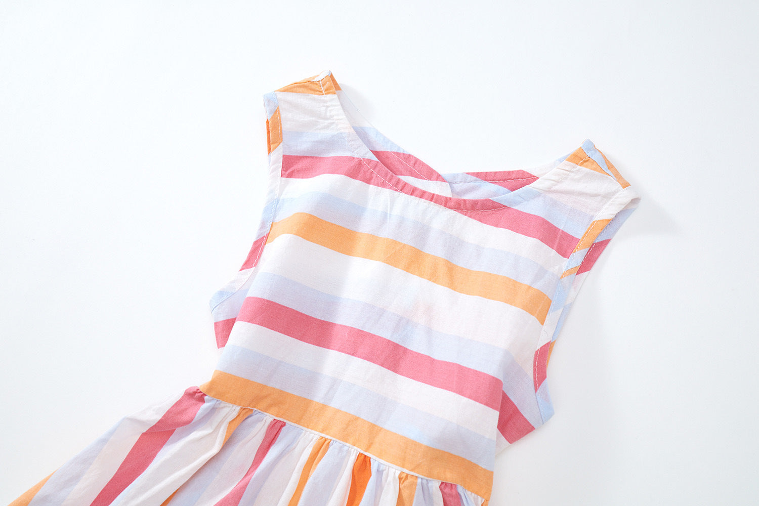 This stylish and comfortable girl's dress features chic stripes and a trendy backless design. Perfect for any summer occasion, it combines fashion and comfort, ensuring your little one looks adorable and feels great all day long.