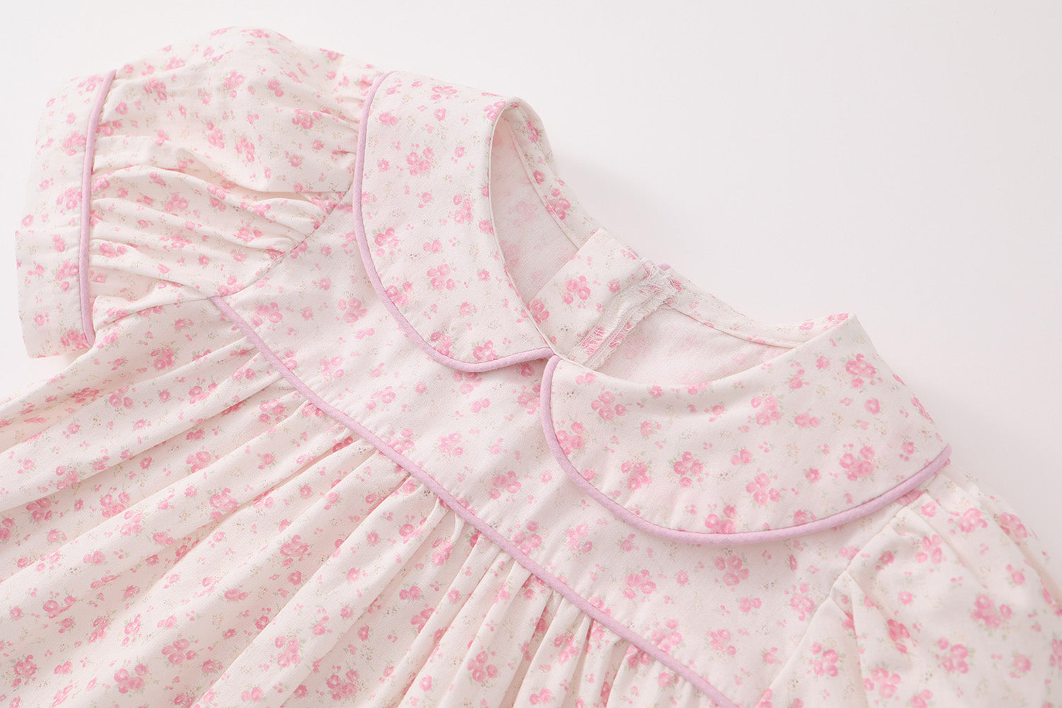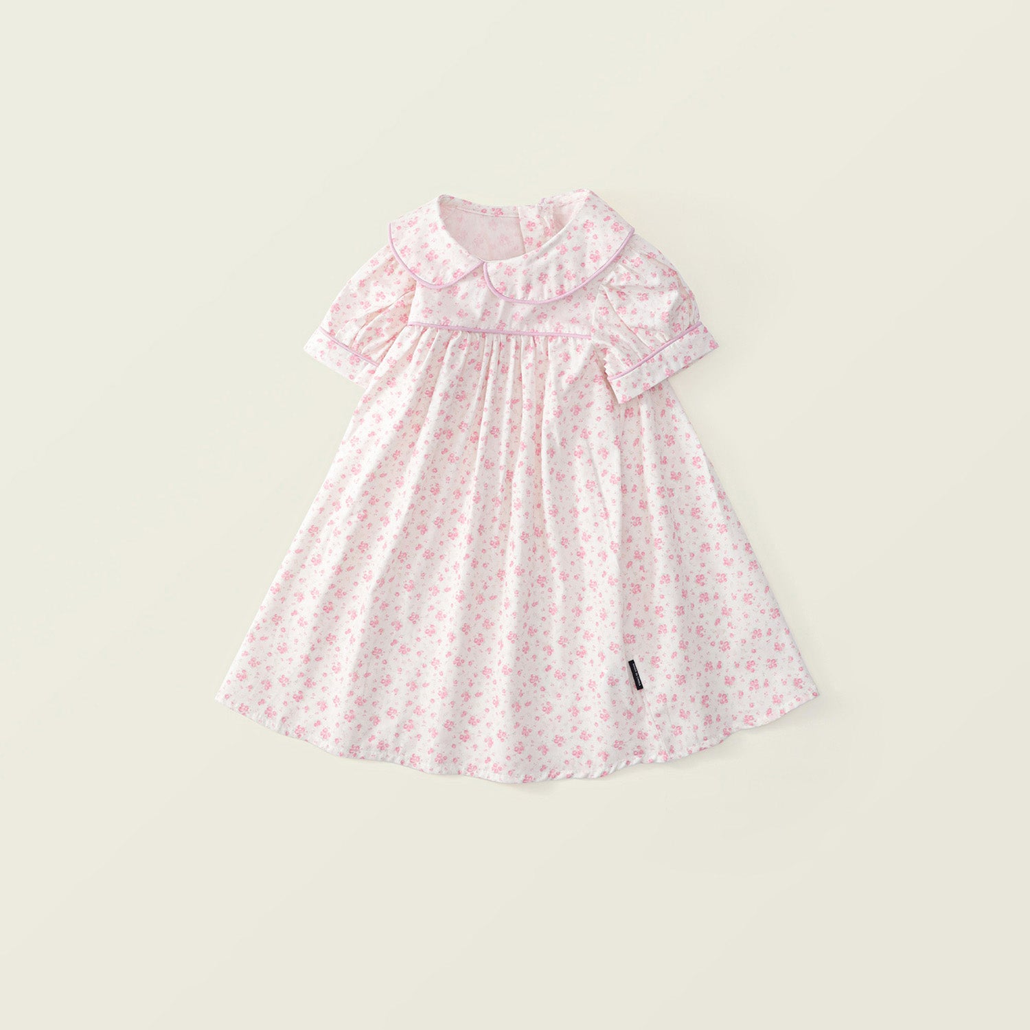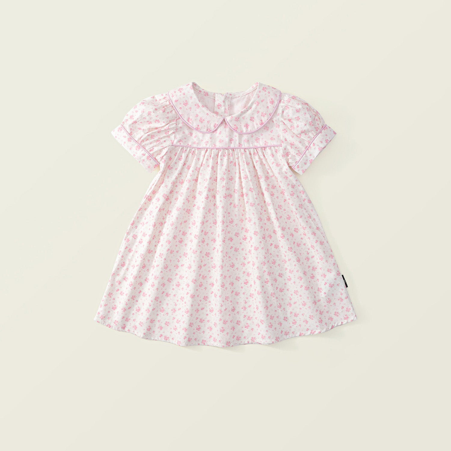 This charming floral dress is perfect for your little one's summer adventures. Featuring a delightful pink floral pattern and a classic Peter Pan collar, this dress embodies the essence of cottagecore style. Made from soft, breathable fabric, it's comfortable for all-day wear. The short sleeves and lightweight design make it ideal for warm weather, while the elegant details add a touch of sophistication. Perfect for garden parties, family outings, or just a sunny day in the park. Let your girl shine in this timeless summer staple!