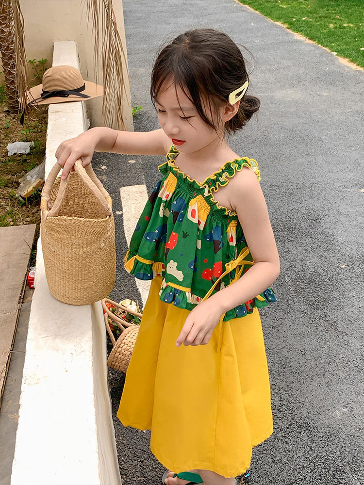 Introducing our latest addition to your little girl's summer wardrobe – the Girl's Summer Tank Top & Cropped Pants Set! Designed for small to medium-sized children, this chic two-piece set features a breezy tank top paired with stylish seven-inch cropped wide-leg pants, giving a modern Korean twist to classic summer wear. Perfect for warm weather outings, this set is crafted to keep your child cool and comfortable while showcasing her unique sense of style. Whether she's playing at the park or enjoying a casual day out, she'll look adorable and feel confident in this trendy and practical summer ensemble.