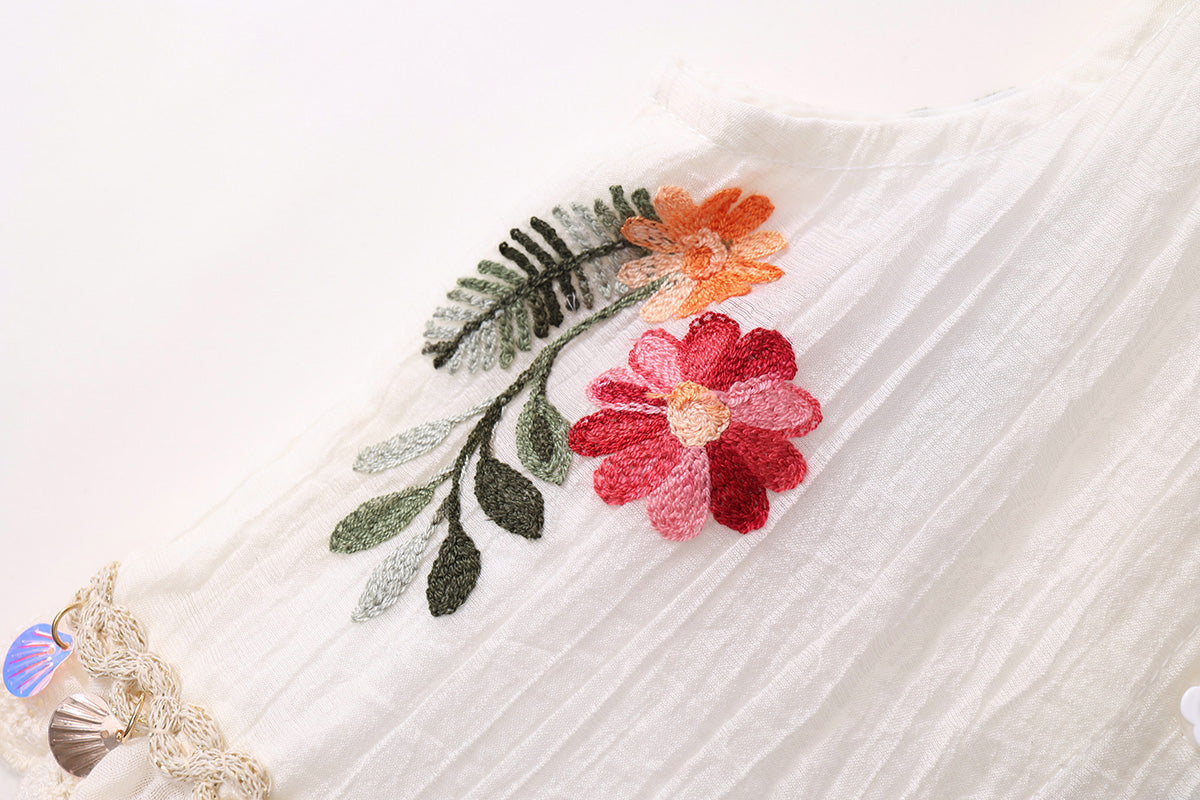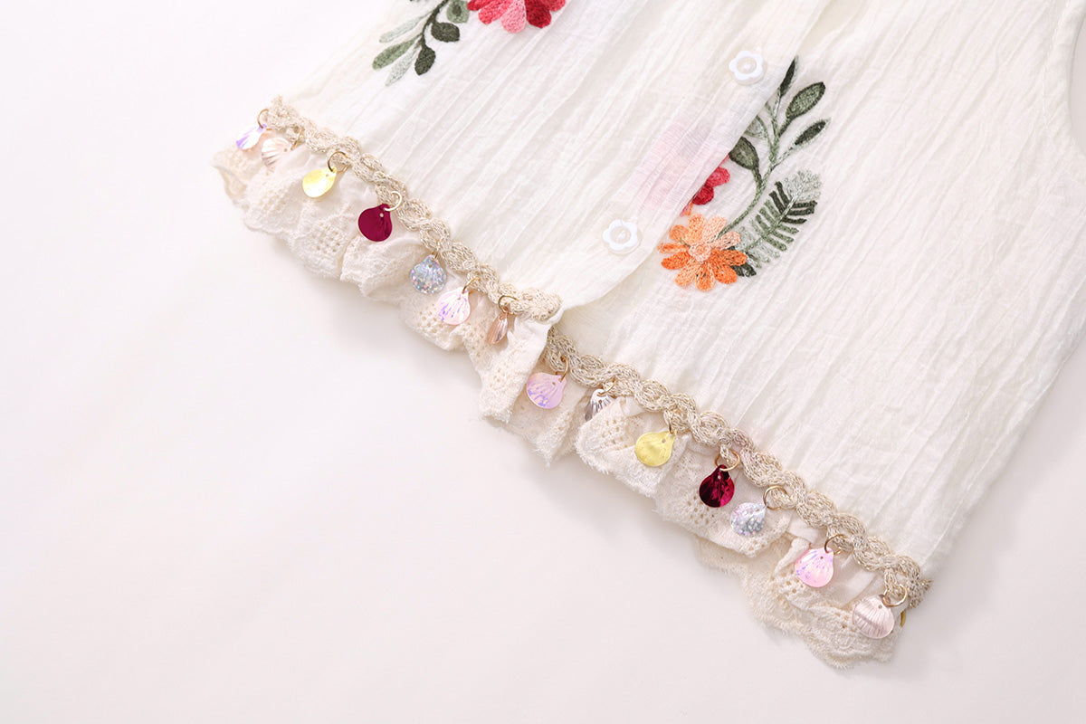 Keep your little one cool and stylish this summer with our Girls' Two-Piece Set! Featuring a charming shell strap embroidered top paired with matching shorts, this outfit is perfect for sunny days and outdoor adventures. Crafted from lightweight and breathable fabric, it offers both comfort and style, making it an ideal choice for any occasion. Let your little fashionista shine with this adorable and trendy summer set!