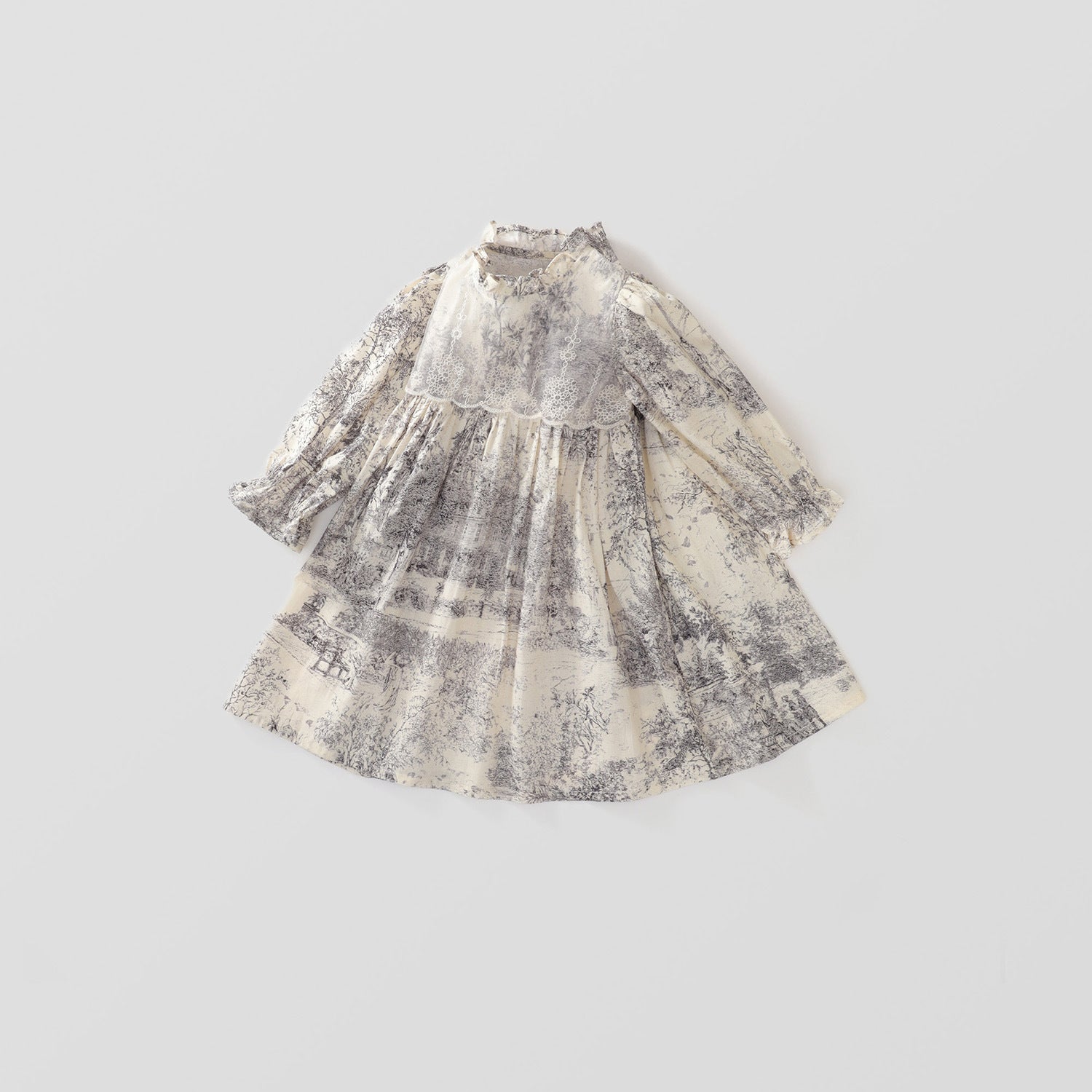Embrace the beauty of nature and elegance with our stunning new kids' princess dress, designed specifically for little girls. This charming dress combines traditional Chinese art with modern fashion, featuring a breathtaking mountain and water landscape print that brings the serene beauty of nature to life. Crafted from high-quality materials, the dress boasts a long sleeve design perfect for the transitioning seasons of spring and autumn. The added lace detailing adds a touch of elegance and sophistication, making it an ideal choice for special occasions or simply dressing up. Let your daughter shimmer and shine in this unique and stylish princess dress, feeling like royalty every day. Whether she's attending a party, a family gathering, or just playing dress-up at home, she'll love the way she looks and feels in this beautiful dress.