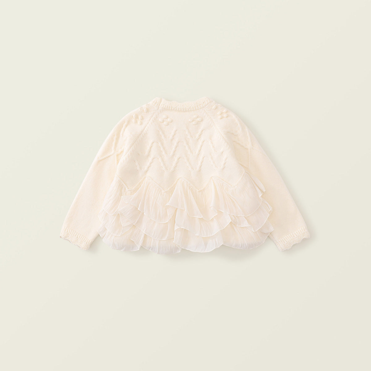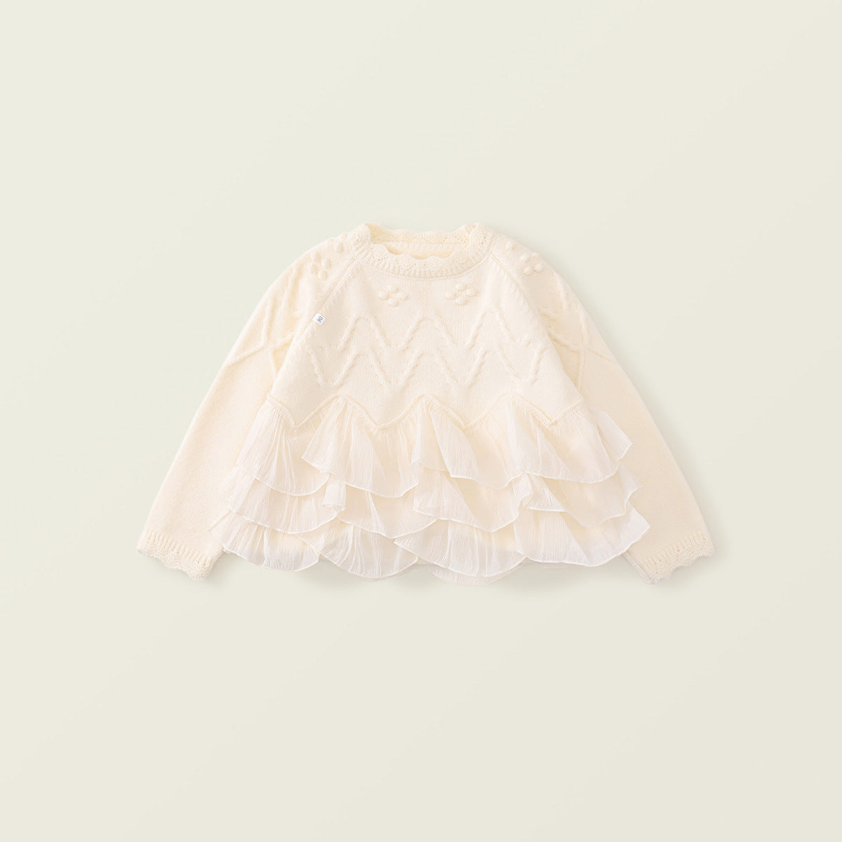 Introducing our latest design for little girls, a charming pullover sweater perfect for the colder seasons. Crafted with a cozy round neck and long sleeves, this sweater features a sweet floral lace trim that adds a touch of elegance and girliness. Made from high-quality, soft materials, it ensures warmth and comfort for your little princess while maintaining a stylish and fashionable look. Perfect for casual wear or special occasions, this sweater is a must-have addition to her wardrobe this winter.