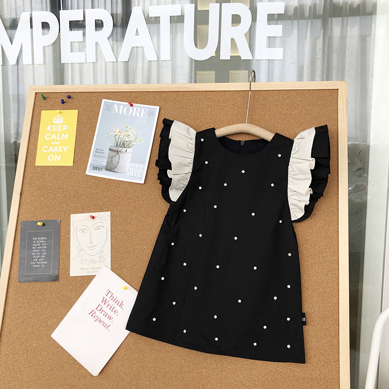 Girls Little Black Dress with Fly Sleeves