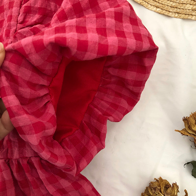Introducing our latest summer style for girls – a vibrant red checkered short-sleeve dress designed to keep her cool and stylish. Made with comfort and charm in mind, this dress is perfect for warm weather outings, family gatherings, or simply playing in the sun. Its playful pattern and breathable fabric ensure she'll look and feel her best this season.